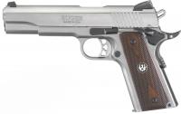 Pistola Ruger modelo SR1911. Calibre .45 ACP. Semiautomática. Corredera acero inoxidable. Cañón de 5 pulgadas. Capacidad de 8+1 disparos. Aparato de puntería tipo Novak. Con 2 cargadores.