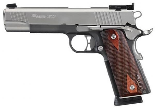 Terminación dos tonos. Calibre .45 Auto. Simple acción. Capacidad de 8+1. Armazón Nitron. Corredera de acero inoxidable. Con 2 cargadores. Grip de madera. Largo total: 22,10 cm. Alto: 13,97 cm. Cañón de 12,70 cm. Miras bajo perfil ajustables. Peso con cargador: 1179,36 gramos.